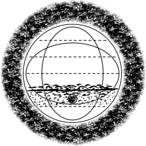 ■此圖示:這是【宇宙地球】的內外構造圖。圖內所畫的直虛線是「天地五界」所有靈異生態的軌道—此線上是各個不一的磁質,為浮平地皮處。(註解:陰府所定義的「地球」和民間所說的「地球」是不同的;民間科學說的「地球」,其實只是天地五界中的第三界,應為平面的圓形大地,非球體;而陰府所定義的「地球」,則是整個天地五界,包含「日月界、風雲靈界、海底浮島界、水界、沼泥界」的【宇宙地球】球體。這兩者的差距,也是當初陰府傳達給民間人類「宇宙地球」的觀念時,被後人誤解,扭曲了真正的地球全貌。)