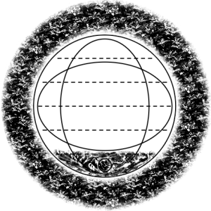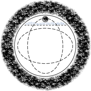 ■此圖示:這是「宇宙地球」內最高的浮平區域—第一界的【日月界】。圖中的內圈虛線,是「磁流導電質體的軌道」,也就是吸引太陽運轉環繞的路徑,此為太陽日常的動態—真相:實際上是﹝太陽繞著「宇宙地球」在運轉﹞,不是民間科學家所謂的「地球繞著太陽公轉」;而且,地球也不會自轉—這是千真萬確的事實!