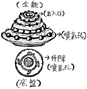 ■此圖示:這是專門往來「陰間地府處、陰府大本營、太陽磁球」之間,接駁使用的【小型飛碟】之其中一種;它是『陰府執行者』出入的運輸交通工具!